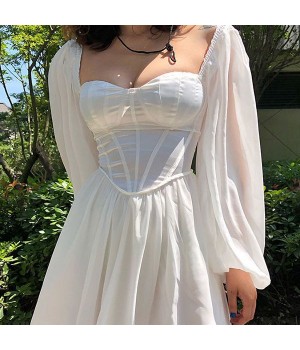 New cross-border women's lantern sleeves OL temperament Slim sexy chiffon pure white dresses..