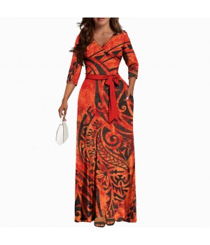 Samoan Puletasi V-neck Casual Dresses Island Maxi Dress Elegant Polynesian Tribal Dress Custom Plus Size Women's Clothing..